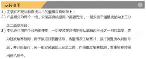 溜槽堵塞開關(guān)裝置使用條件:
